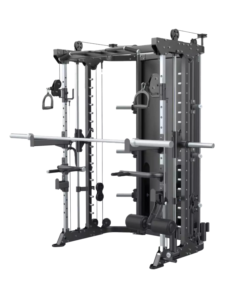 Su sistema Smith integrado garantiza movimientos controlados y precisos, reduciendo el riesgo de lesiones y permitiendo un entrenamiento más eficiente. Además, su diseño versátil te permite trabajar múltiples grupos musculares, desde tren superior hasta tren inferior, con total comodidad y control