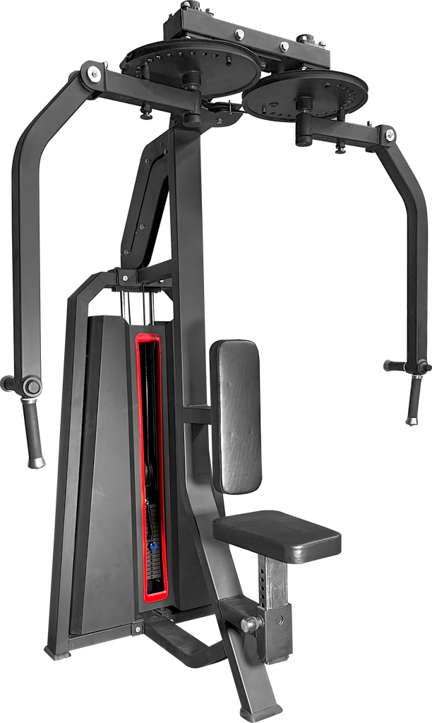 La Pec Delt FCK está diseñada para fortalecer y definir el pecho y la espalda mediante un movimiento controlado y fluido que aísla los músculos de forma precisa.